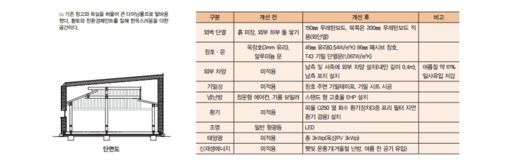 건축주는 예산 대부분을 구조 강화와 단열에 투입했다. (중략) 단열과 기밀성이 매우 떨어지고, 냉난방 기기를 설치해도 쾌적함과 상관없는 주택이었다. (중략) 북측은 습해서 벽이 주저앉았을 정도다.