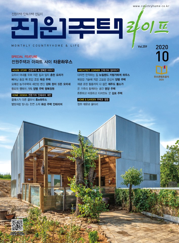 저희 이에코건설이 그린리모델링으로 진행 한 강화 구옥이 건축잡지 [전원주택 라이프]의 2020년 10월호에 소개가 되었습니다. 해당 주택은 2020년 그린리모델링 우수사례 공모전에 참여해 지난 2018년에 1등 상인 대상 수상에 이어 이번에는 2등 상인 최우수상에 수상을 하였습니다. 리모델링의 개념보다는 신축의 개념? 외형이 신축의 개념이라고 하는 사고로 접근하는 외부심사의윈들의 ......약간은 아쉬운 마음이 듭니다. ^^