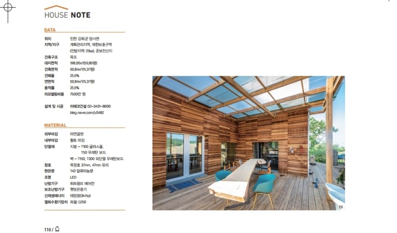 저희 이에코건설이 그린리모델링으로 진행 한 강화 구옥이 건축잡지 [전원주택 라이프]의 2020년 10월호에 소개가 되었습니다. 해당 주택은 2020년 그린리모델링 우수사례 공모전에 참여해 지난 2018년에 1등 상인 대상 수상에 이어 이번에는 2등 상인 최우수상에 수상을 하였습니다. 리모델링의 개념보다는 신축의 개념? 외형이 신축의 개념이라고 하는 사고로 접근하는 외부심사의윈들의 ......약간은 아쉬운 마음이 듭니다. ^^