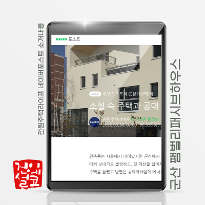 지난번에 잡지 [전원주택 라이프]에 게시된 군산 팸벌리 패시브하우스에 대한 글을 올렸었읍니다. 그런데 잡지에 말고 해당 잡지사의 네이버포스트에도 글이 있어서 가져왔읍니다. 잡지 보다는 좀 더 다양하고 많은 내용이 포함되어 있어서 따로 추가해 봅니다.
