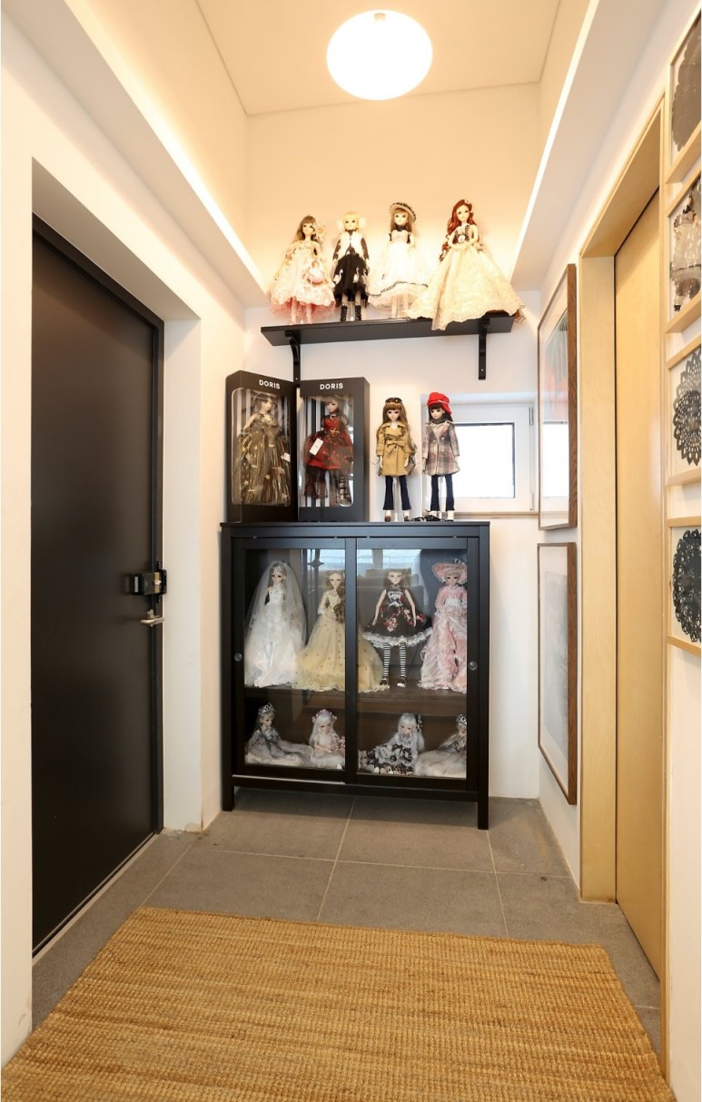 주거 진입 공간은 우편 택배함 기능의 기벽으로 자연스럽게 동선이 유도된다.